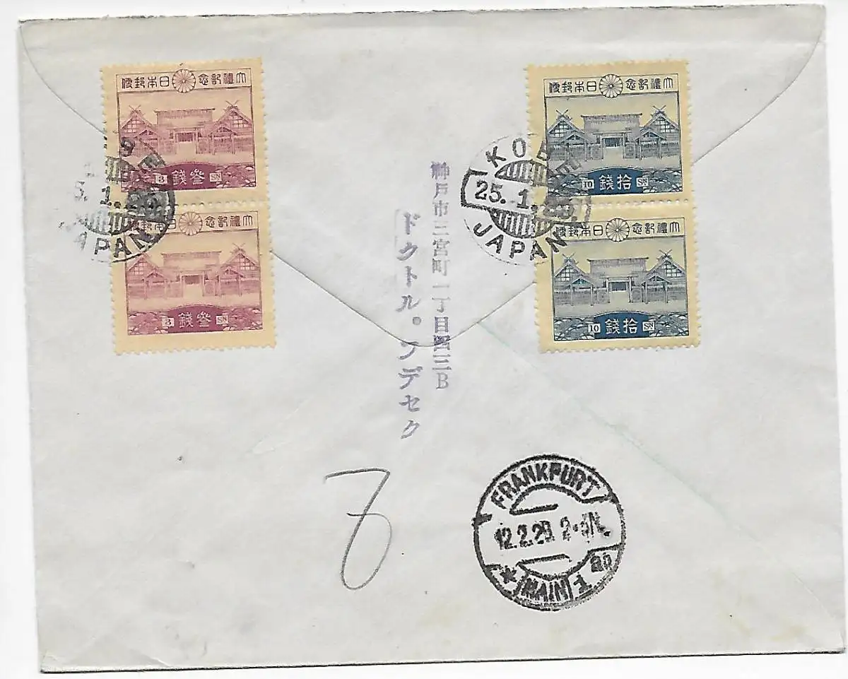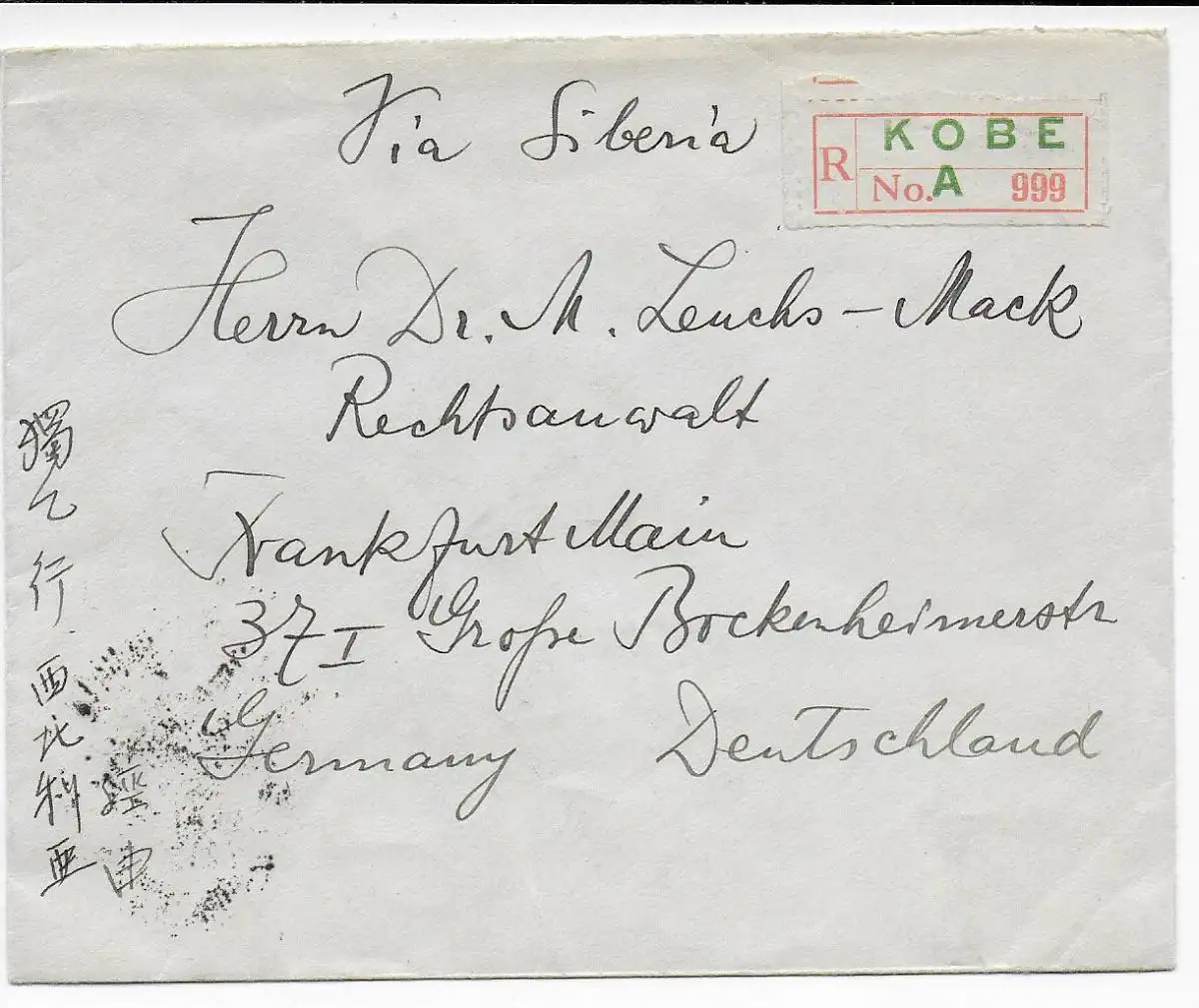 Japan: Einschreiben Kobe über Sibirein nach Frankfurt/M 1929