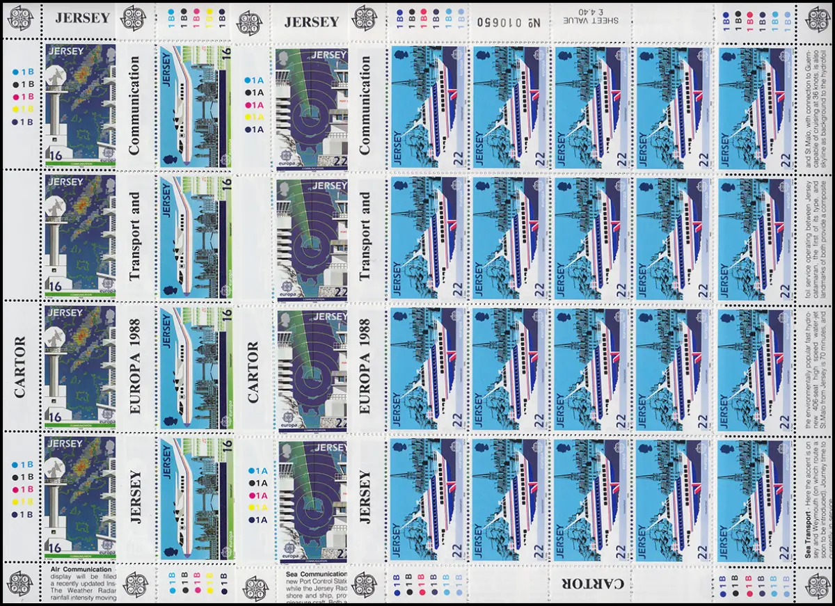 Jersey 435-438 Europa Transport- und Kommunikationsmittel, Kleinbogen-Satz **