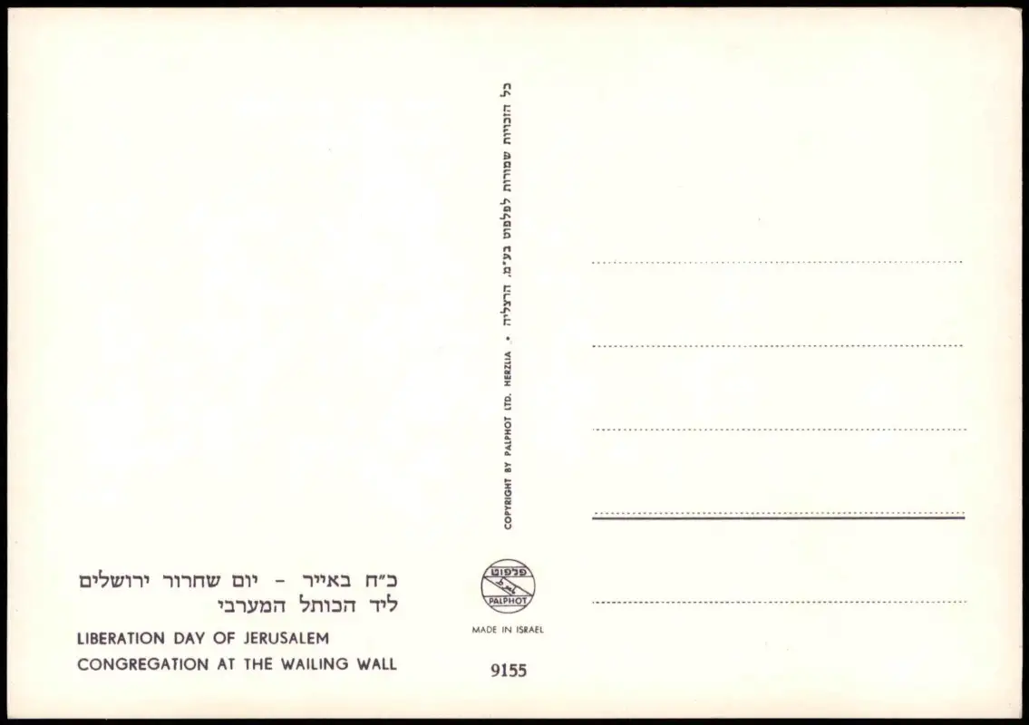 Jerusalem Jeruschalajim (רושלים) CONGREGATION AT THE WAILING WALL 1970