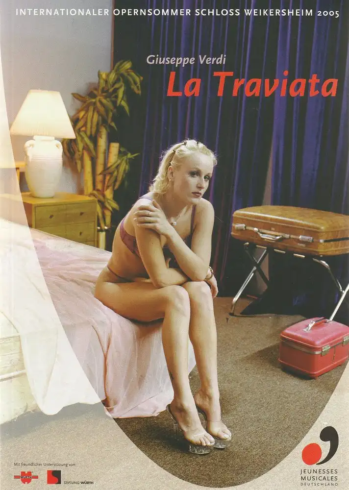 50. Internationaler Sommerkurs der Jeunesse Musicals Deutschland auf Schloss Weikersheim. Oper in drei Akten vom Francesco Maria Piave nach dem Roman La Dame aux Camelias von Alexandre Dumas d. J., in italienischer Sprache. Musikalische Leitung: Yakov Kreizberg / Amy Andersson. Inszenierung: nach einem Konzept von Manfred Weiß. Bühne und Kostüme: nach einem Konzept von Okarina Peterund Timo Dentler. Mitwirkende: Aram Chang / Ga-Seul Son, Zdravka Ambric / Juliane Kindler / Elena Maier, Sa-Hoon Johannes An / Sung Won Jin / Tvrtko Stipic, Jae-Seop Kim / Armando Puklavec, Morschi Franz / Jan Heinrich Kuschel, u. a. - Theaterprogramm, Opernprogramm, Ballettprogramm, Musicalprogramm, Konzertprogramm, Theatermemorabilia, Programmhefte Sammlung, deutsche Theatergeschichte.