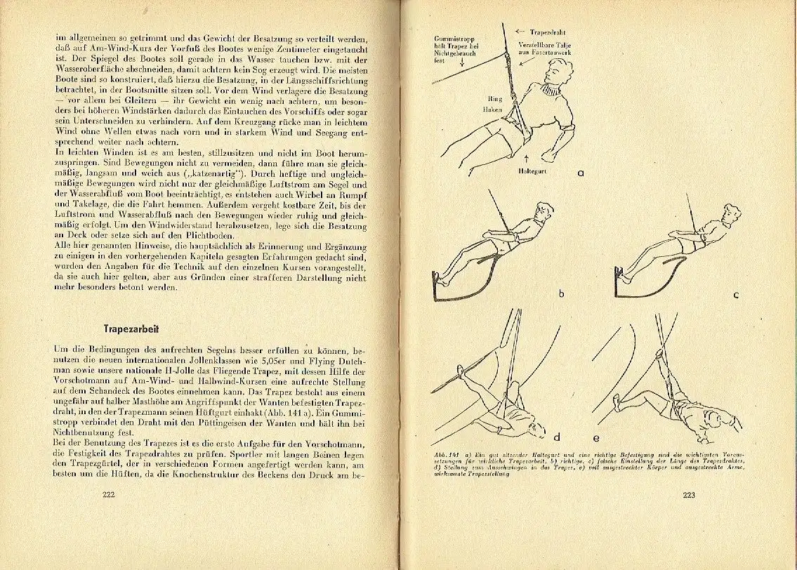 guter Zustand, geringe Gebrauchs- und Alterungsspuren: Einbandecken gering abgenutzt bzw.leicht defekt - Rücken teils etwas fleckig - Papier etwas vergilbt, aber Seiten sauber und ordentlich - weniger als 10 kleine Eselsohren, Bei der seglerischen Ausbildung steht der Erwerb und die Vertiefung der seemännischen Kenntnisse im Vordergrund. Nur wer ein Boot seemännisch sicher führen kann und das durch den Erwerb eines Befähigungsnachweises nachgewiesen hat, darf sich im Rahmen seiner segelsportlichen Leistungsentwicklung dem Wettsegeln in den Regatten und der Verbesserung der Schnelligkeit seines Bootes widmen. Aus diesem Grunde vermitteln auch die Bände I bis IV dieser Buchreihe zuerst die Lehrstoffe, die zum Erwerb eines Befähigungsnachweises zur Führung eines Sportbootes nach den Ausbildungsvorschriften des Deutschen Segelsportverbandes im DTSB gefordert werden müssen. Der vorliegende Band zum Erwerb allgemeiner Grundkenntnisse der Segeltechnik, gepaart mit einigen besonderen Hinweisen für die wichtigsten internationalen Bootsklassen, dient zur Weiterbildung der Regattasegler, für die es bisher noch keine Qualifikationsnachweise gibt. Der qualifizierte Regattasegler unterscheidet sich von einem allgemeingebildeten Segler, der seinen Segelsport nur zur Entspannung und Erholung ausübt, dadurch, daß er vom Gesichtspunkt der Technik bewußter und auch überlegter alle Teile seines Bootes zur Erzielung höchstmöglicher Geschwindigkeit zum Einsatz bringt und in ihrem Zusammenwirken diesbezüglich aufeinander abstimmt. Der allgemeingebildete oder der Fahrtensegler entscheidet demgegenüber mehr mit Gefühl und Erfahrung, welche Kurse das Boot laufen und welche Segel es tragen muß, um unter Berücksichtigung größtmöglicher Sicherheit eine ausreichende Reisegeschwindigkeit zu erzielen. Durch das seglerische Gefühl allein kann sich ein Regattasegler jedoch nur bis zu einer gewissen Leistungshöhe entwickeln. Wer Leistungssport im Regattasegeln auf die Dauer erfolgreich betreiben will, muß einen umfassenden Einblick in das weite Fachgebiet der Segeltechnik nehmen, das nur schwer gegenüber der Physik, der Bootsbautechnik und anderen -Wissenschaftsgebieten abzugrenzen ist. Unter dem Begriff „Segeltechnik verstehen wir die praktische Anwendung der in diesem Buche dargelegten wissenschaftlichen Erkenntnisse der Aerodynamik und Hydrodynamik zum Trimmen eines Bootes und beim Regattasegeln. Ohne Kenntnis der vielfältig verzahnten Zusammenhänge kann der Rennsegler sein seglerisches Gefühl nicht siegentscheidend einsetzen. Je größer das Regattafahrzeug und je mehr Einzelheiten an Bord zum Trimmen und .zur Verbesserung der Segeltechnik benutzt werden können, desto höher ...", Halbleinen, ca. 15 x 21, 270 Seiten mit 157 Bildern