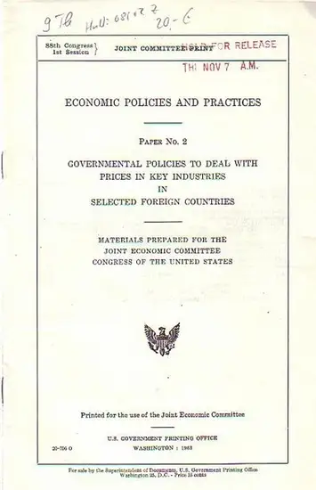Joint Economic Committee: Economic policies and practices : Materials prepared for the Joint Economic Committee Congress of the United States. Paper No. 2: Governmental policies to deal with prices in key industries in selected foreign countries. No. 3: A