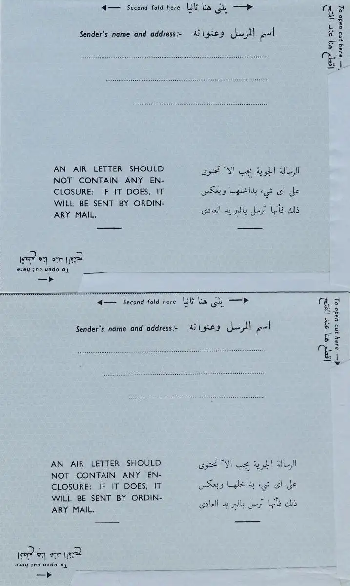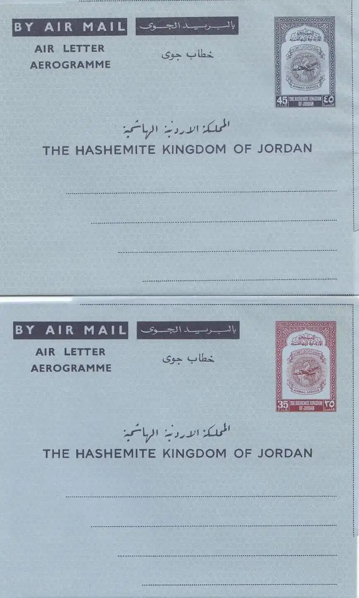 Jordan: 2x air letter adressed to Hashemite Kingdom of Jordan -
