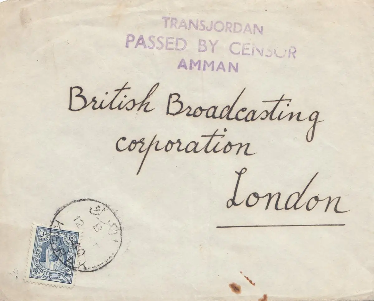 Jordan: Kerak to London, Transjordan Passe by Censor