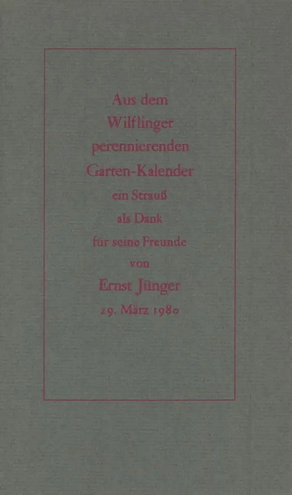 Titel: Aus dem Wilflinger perennierenden Garten-Kalender ein Strauß als Dank für seine Freunde von Ernst Jünger, 29. März 1980