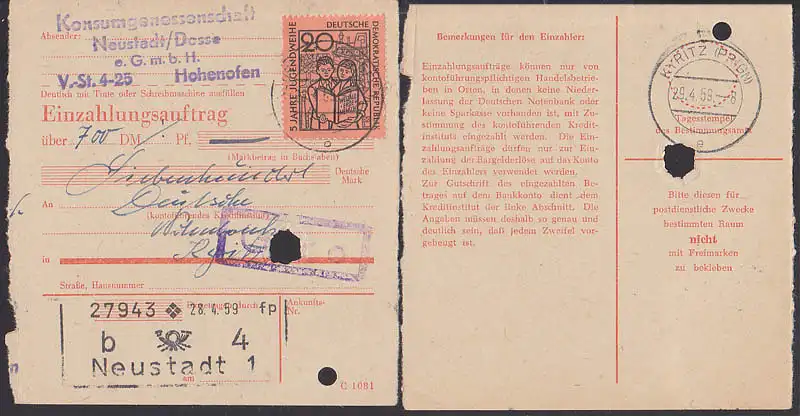 Jugendweihe in der DDR 20 Pfg. (681),Kinder lesen aus "Weltall Erde Mensch", Neustadt 28.4.59, Giro