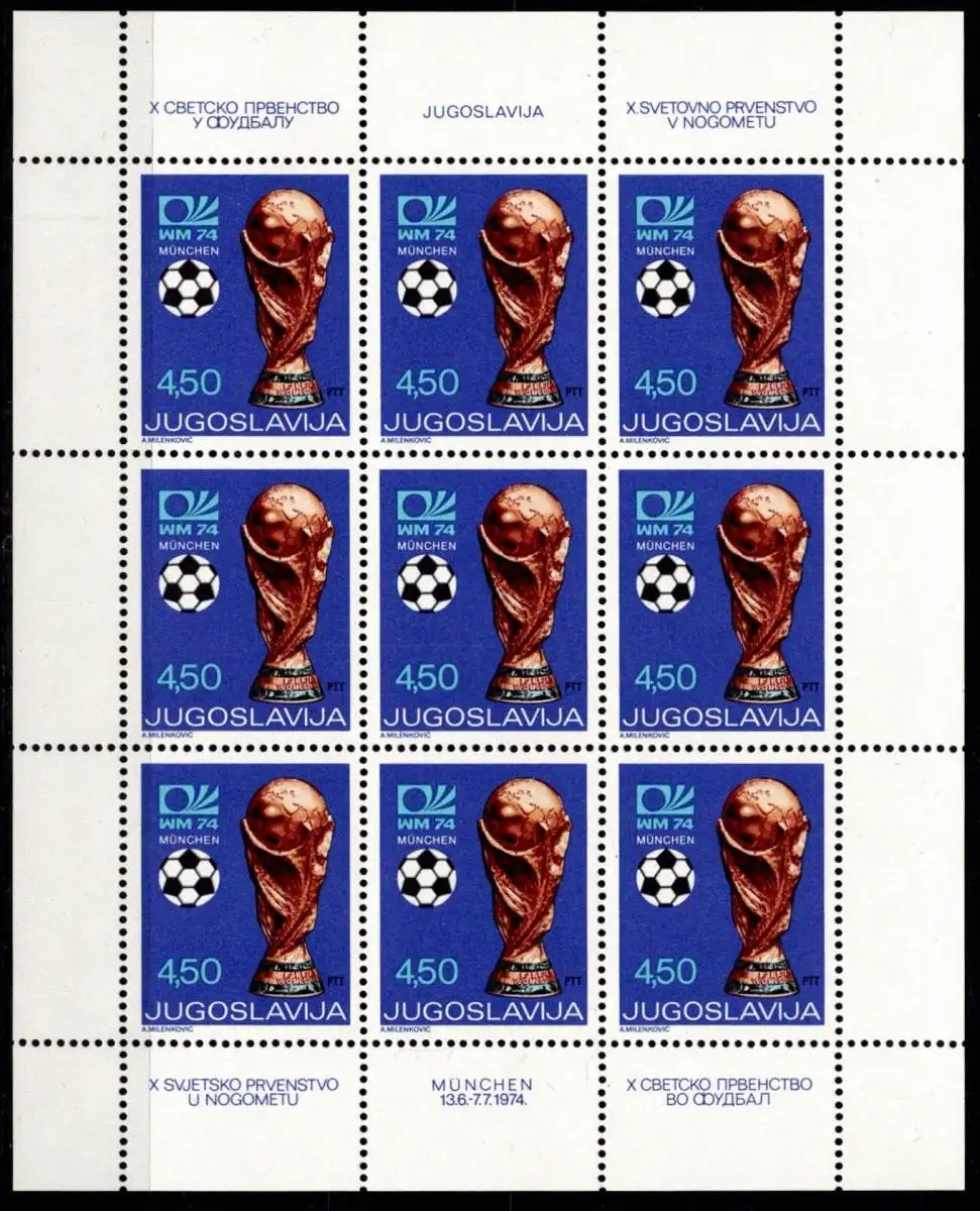 Jugoslawien 1567 postfrisch als Kleinbogen Fußball WM #NY663