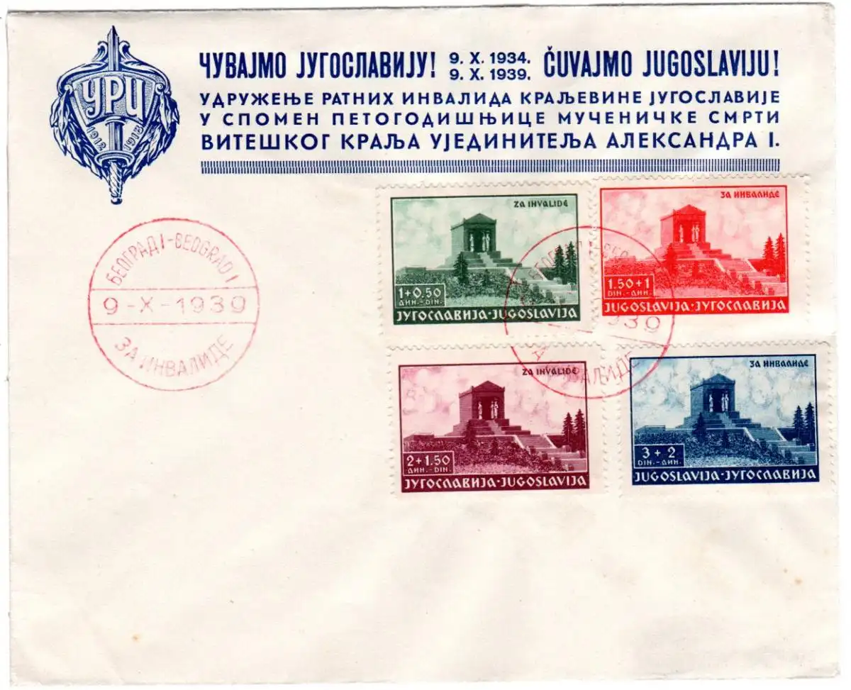 Jugoslawien 389-392, FDC m. kpl. Ausgabe 5. Todestag König Alexander