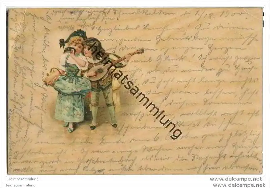 Junge und Mädchen - Mandoline - Eckknick oben links (G24746) gel. 1900
