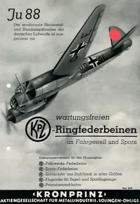 Junkers Ju 88 / Kronprinz Kleinplakat 1940er Jahre