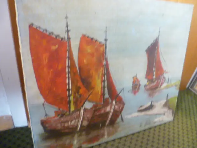 K Münch Ölgemälde Fischerboote an der Adria signiert um 1940-50 Jahre