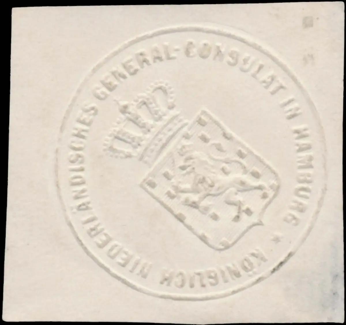 Konsulat, Niederlande, Briefsiegelmarke, ausgeschnitten aus einem Brief, Größe/Zustand: 3 , fleckig, Original Verschluss-Siegelmarke aus Papier welche früher von Behörden, Firmen etc. zum Versiegeln der Briefe benutzt wurden