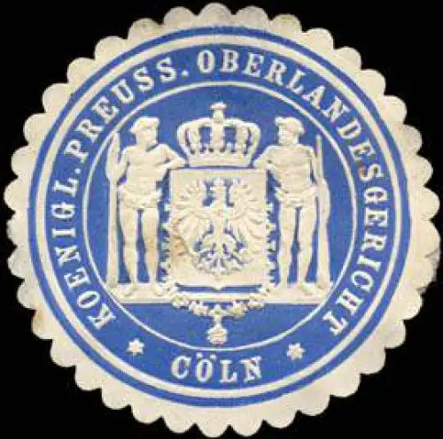 Cöln, blau, weiß, geprägt, Größe/Zustand: 4 , fleckig, Original Verschluss-Siegelmarke aus Papier welche früher von Behörden, Firmen etc. zum Versiegeln der Briefe benutzt wurden
