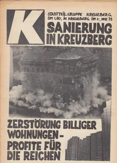 Titel: K. Sanierung in Kreuzberg. Stadtteilgruppe Berlin Kreuzberg. Zerstörung billiger Wohnungen - Profite für die Reichen. Sanierungsgebiet Bethanien, Mariannenplatz, Oranienplatz, Wassertorplatz bis Landwehrkanal, Skalitzer Straße, Kottbusser Tor und Umgebung Blöcke 70, 80, 81, 84-89