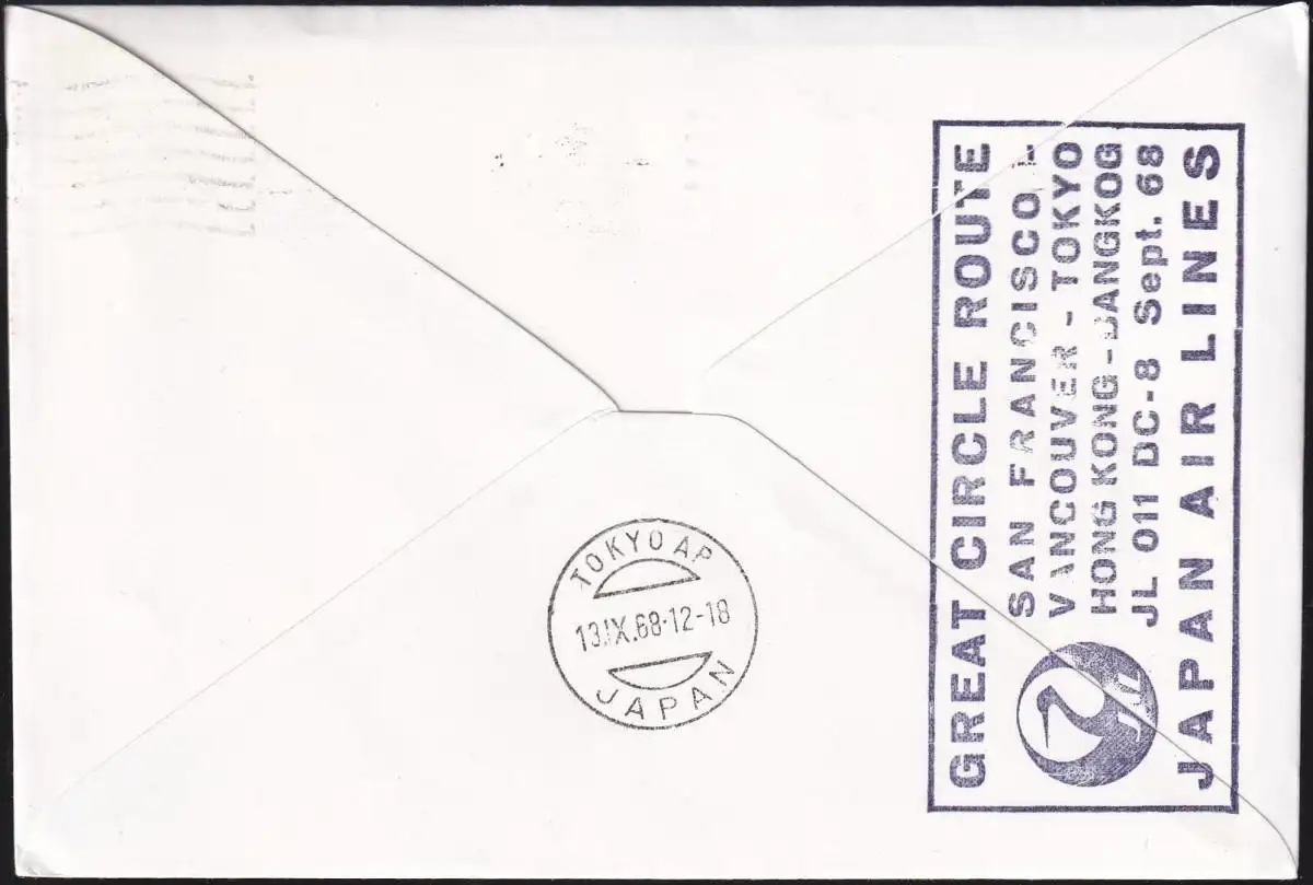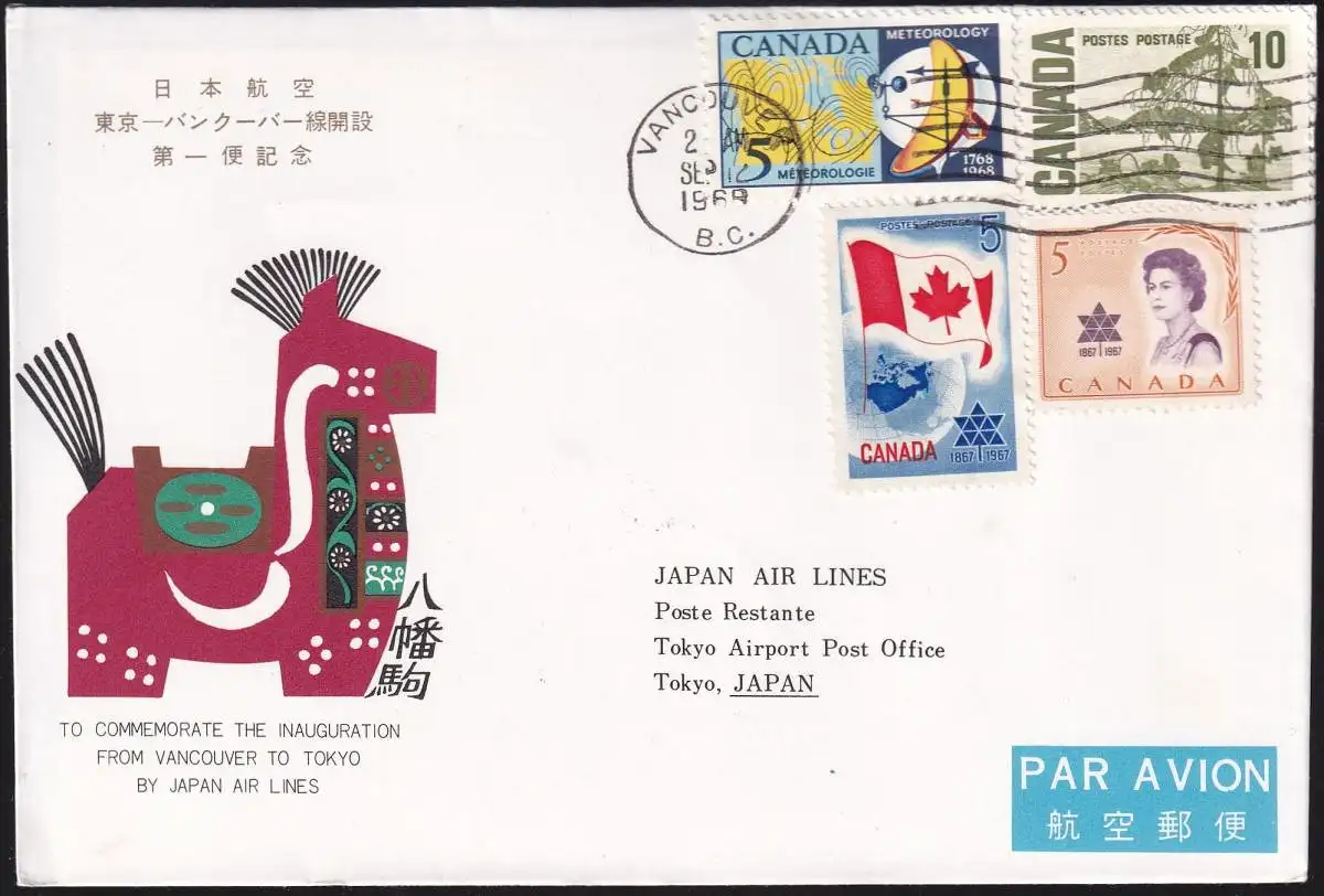 KANADA 1968 JAL FIRST FLIGHT VANCOUVER - TOKIO ROUTE