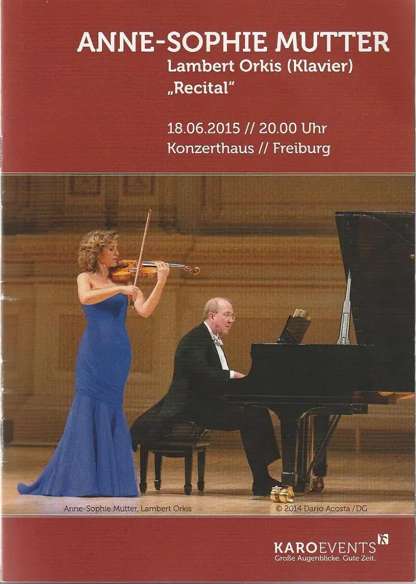 KAROevents Konzert-und Eventagentur: Programmheft Anne-Sophie-Mutter / Lambert Orkis RECITAL 18. Juni 2015 Konzerthaus Freiburg.