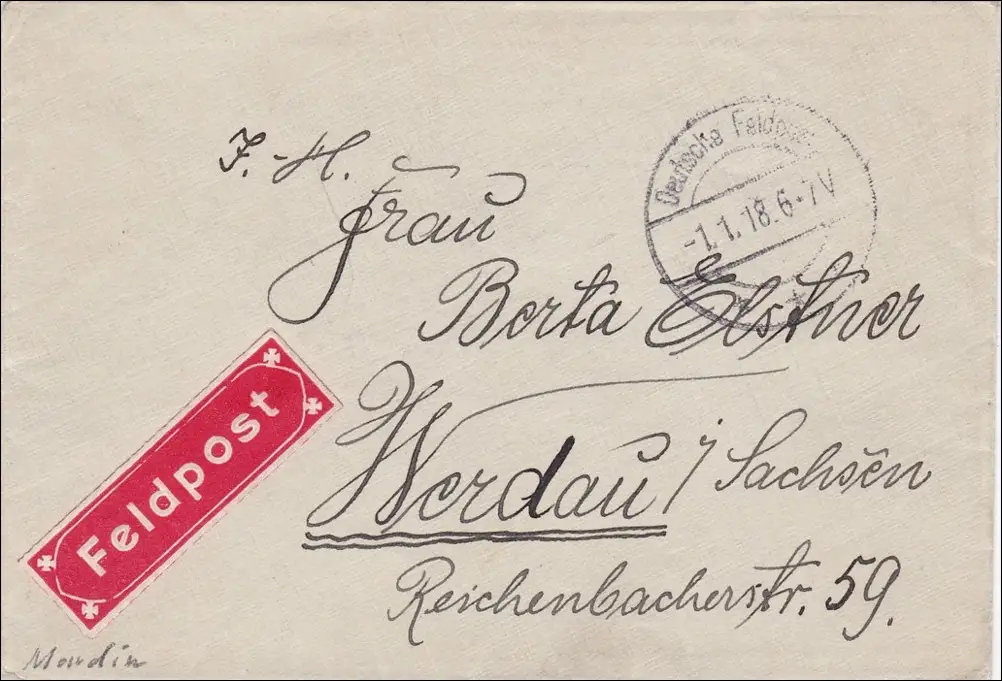 KDJA-Klein Asien, Brief eines Telegraphisten nach Werdau 1918 FELDPOST