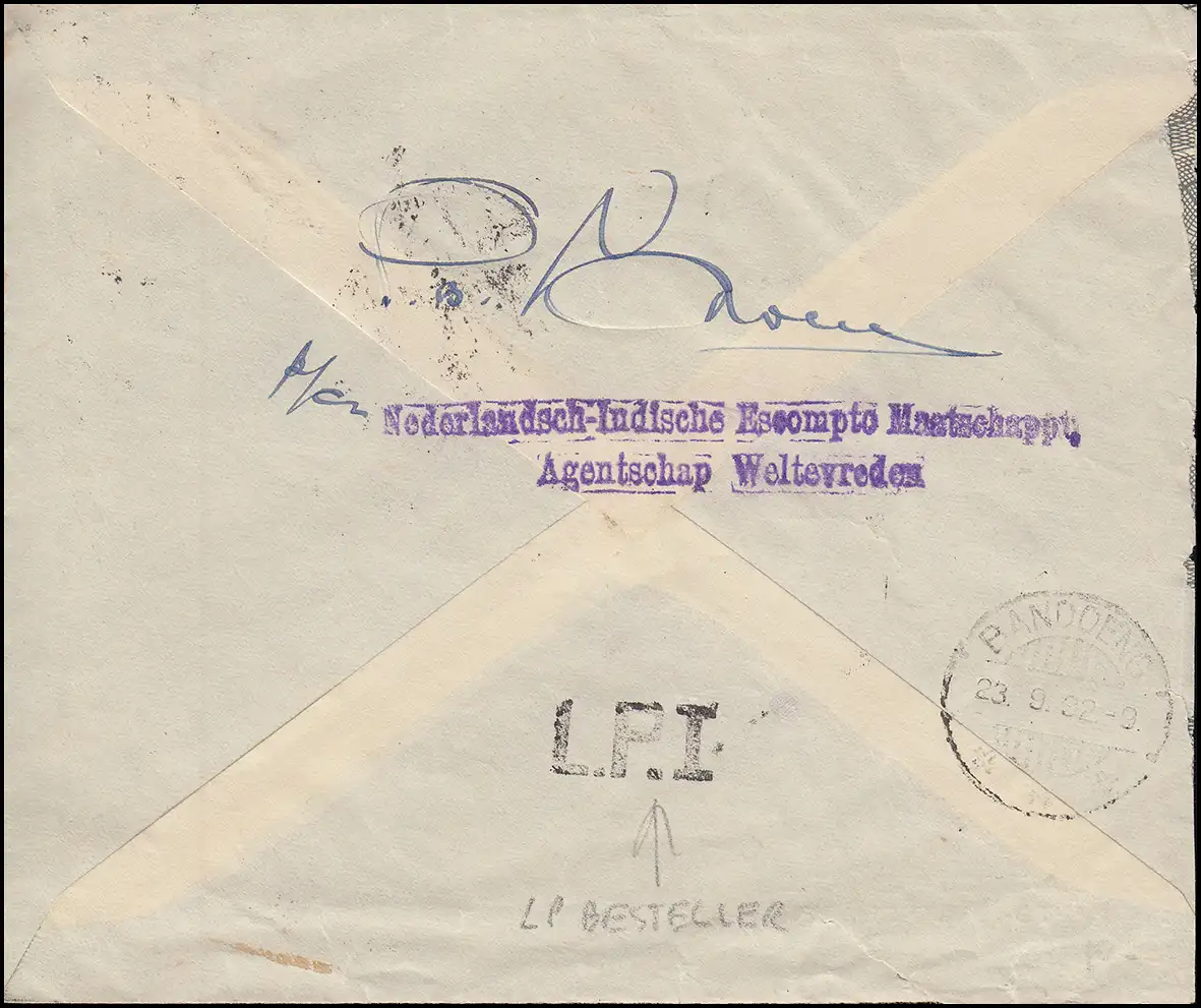 KLM-Flugpost Batavia-Centrum 22.9.32 nach BANDOENG 23.9. - mit Einzeiler L.P.I.
