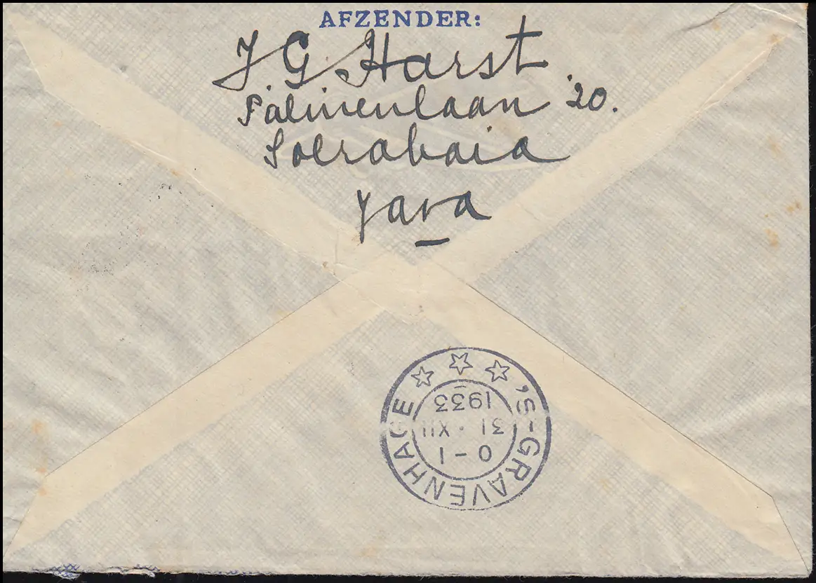 mit Ankunftsstempel S'GRAVENHAGE 31.12.1933, Frankatur mit NVPH LP 30 und 117