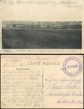 KP Eisenbahn-Arbeiter-Bataillon Nr.2 Feldpost 1914 auf AK LonguyonKP = Königlisch Preißische Feldpost