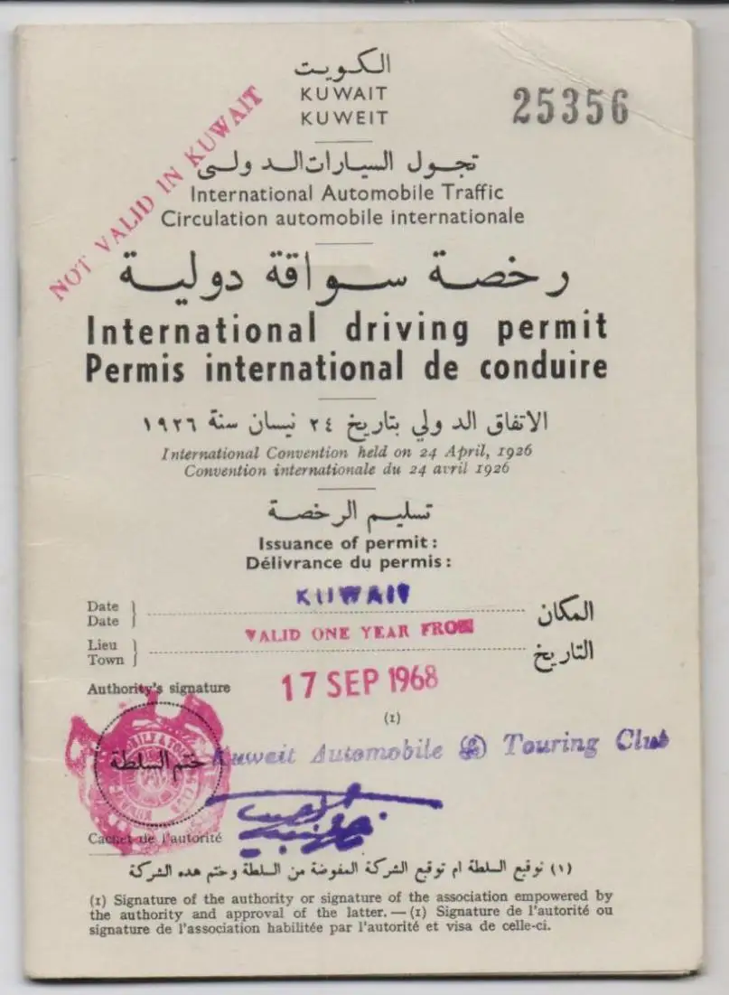 KUWAIT - International Drivers License 1968, # 25356, German Driver