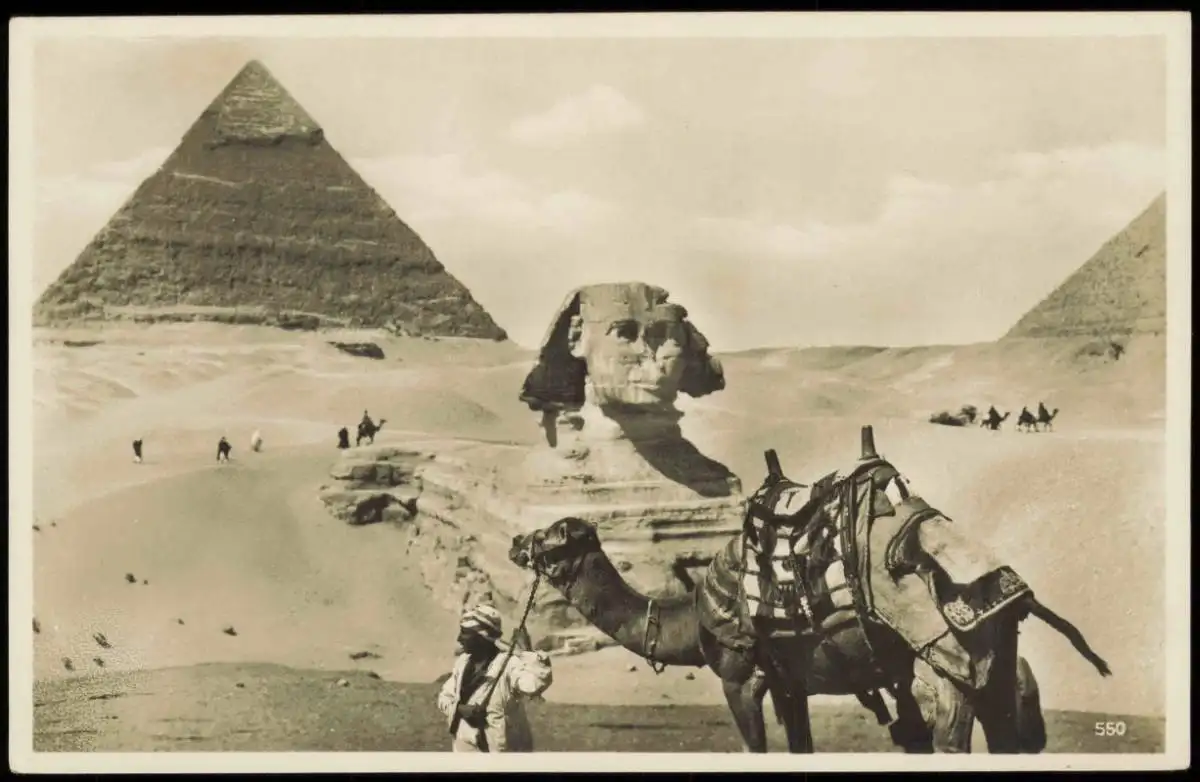 Kairo القاهرة Sphinx und Pyramiden; Einheimischer mit Kamel 1920