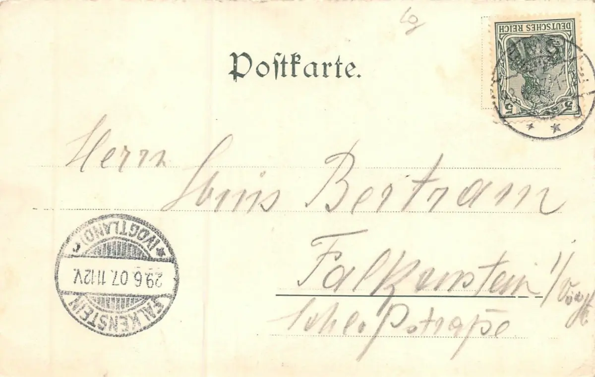 Original Postkarte Maße 9 x 14 cm Rückseite: g elaufen 1907 von Ems nach Falkenstein (Vogtland) Zustand: leichte Gebrauchsspuren