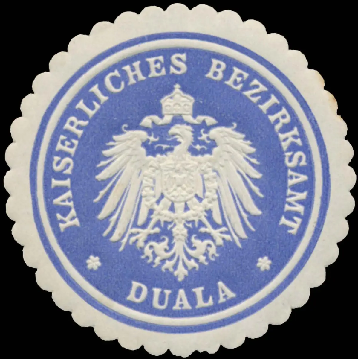 Kolonialmarke, blau, weiß, geprägt, Größe/Zustand: 4 , guter Zustand, Original Verschluss-Siegelmarke aus Papier welche früher von Behörden, Firmen etc. zum Versiegeln der Briefe benutzt wurden