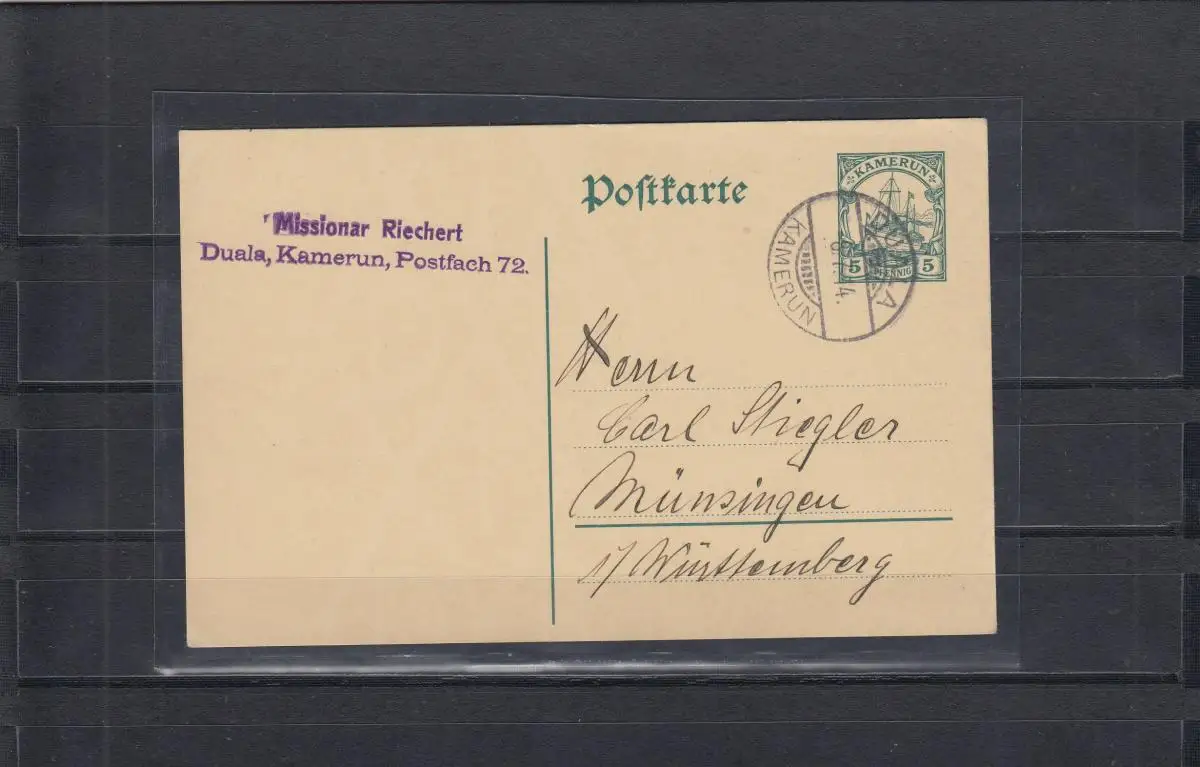 Kamerun 1914: Ganzsache Duala, Missionar, letzte Post mit der Lucia Woermann