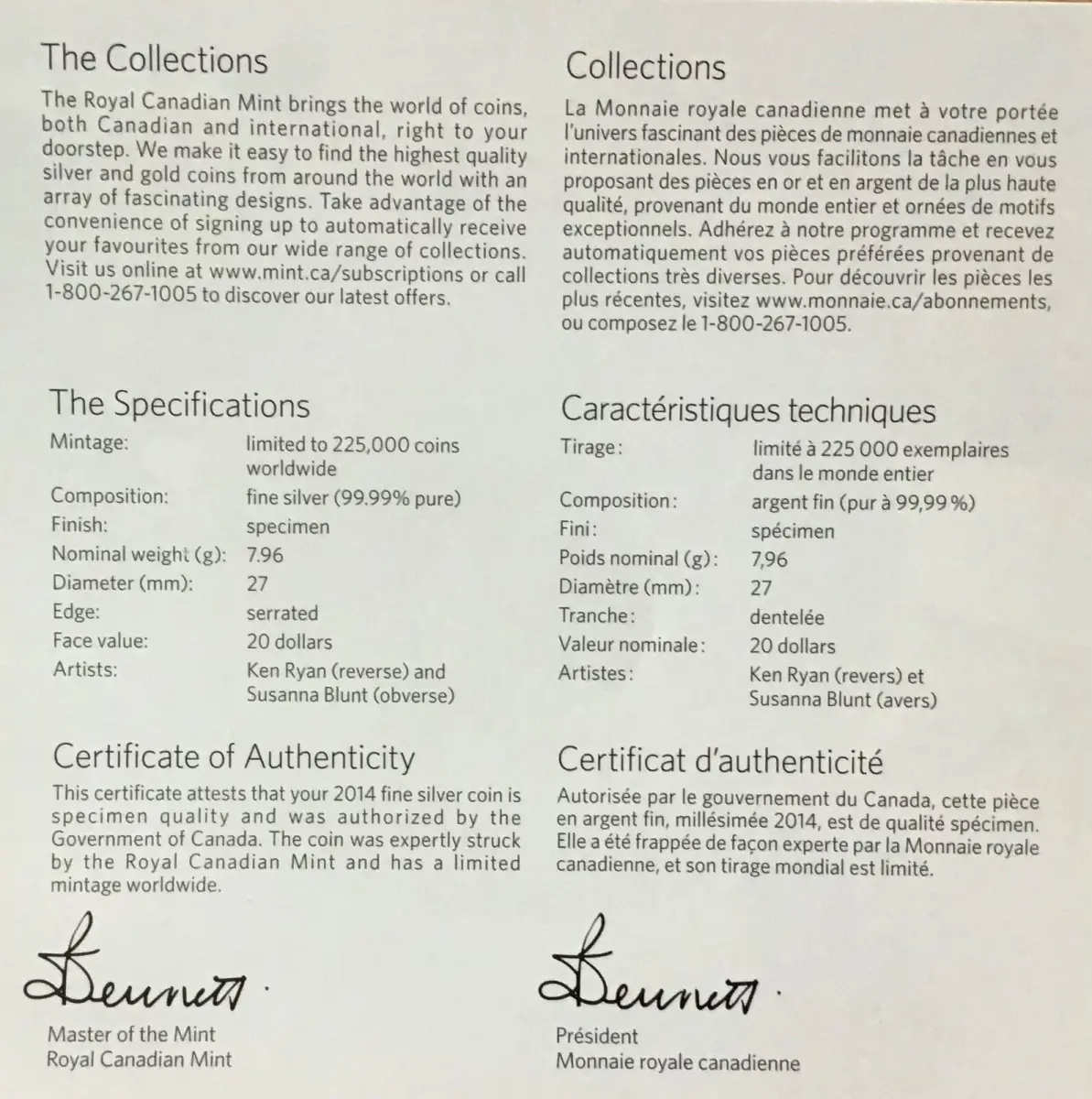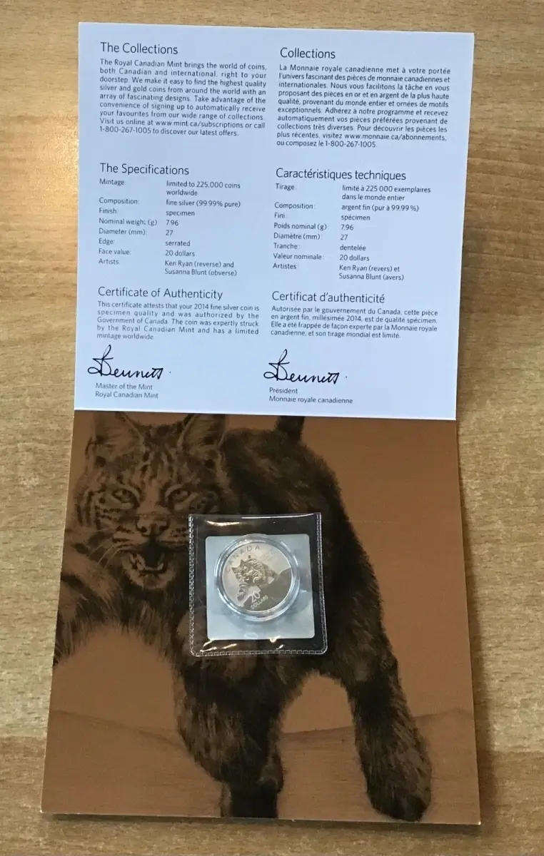 Kanada 20 Dollars 2014 Rotluchs Silber Probe