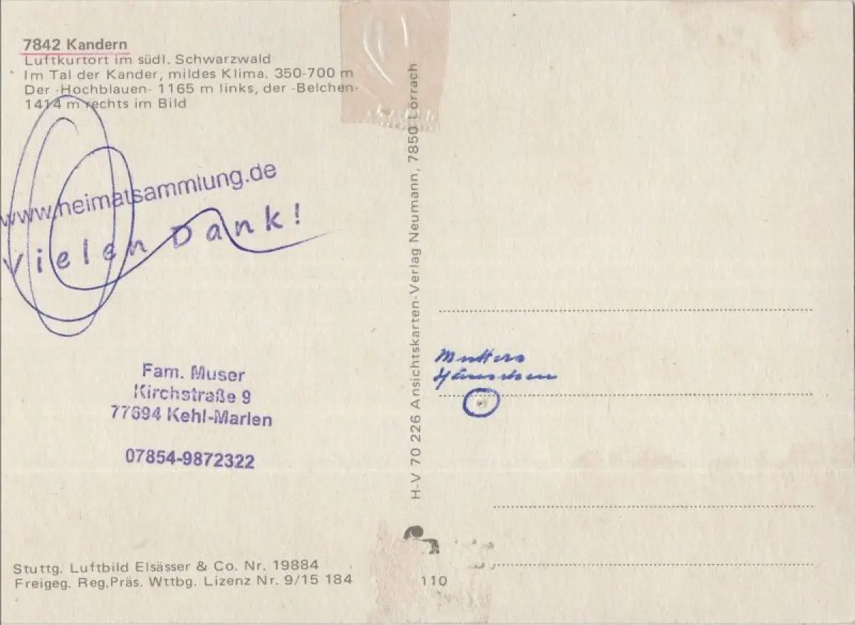 Postleitzahl:79400 (neu) / W 7842 (alt)