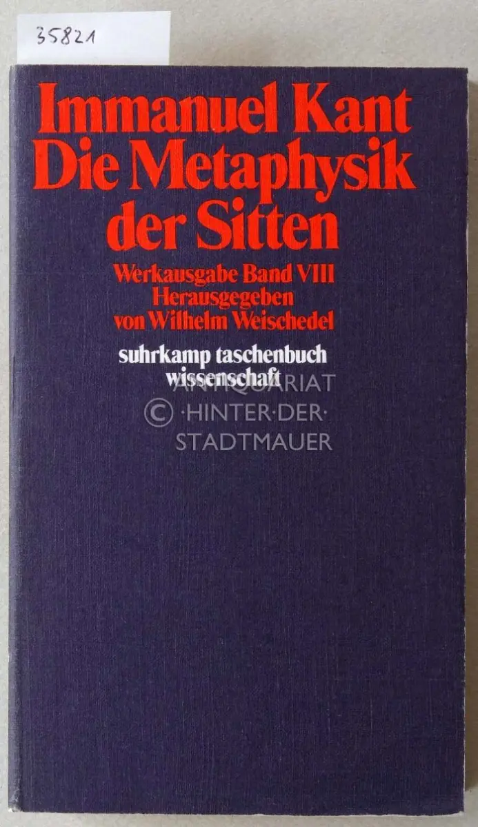 Kant, Immanuel: Die Metaphysik der Sitten. Werkausgabe Band VIII. [= suhrkamp taschenbuch wissenschaft, 190] Hrsg. v. Wilhelm Weischedel.
