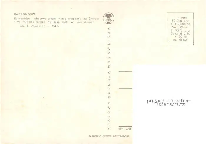 Karkonosze Schronisko i obserwatorium meteorologiczne na Sniezce Karkonosze postalisch nicht gelaufen nach 1965 Erhaltung siehe scans [WerneD78] WernPID7