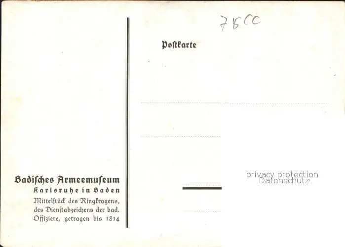 Karlsruhe Dienstabzeichen bad Offiziere Armeemuseum Karlsruhe Karlsruhe postalisch nicht gelaufen 1921-1965 Erhaltung siehe scans Alte Ansichtskarte Postkarte hz Woerer