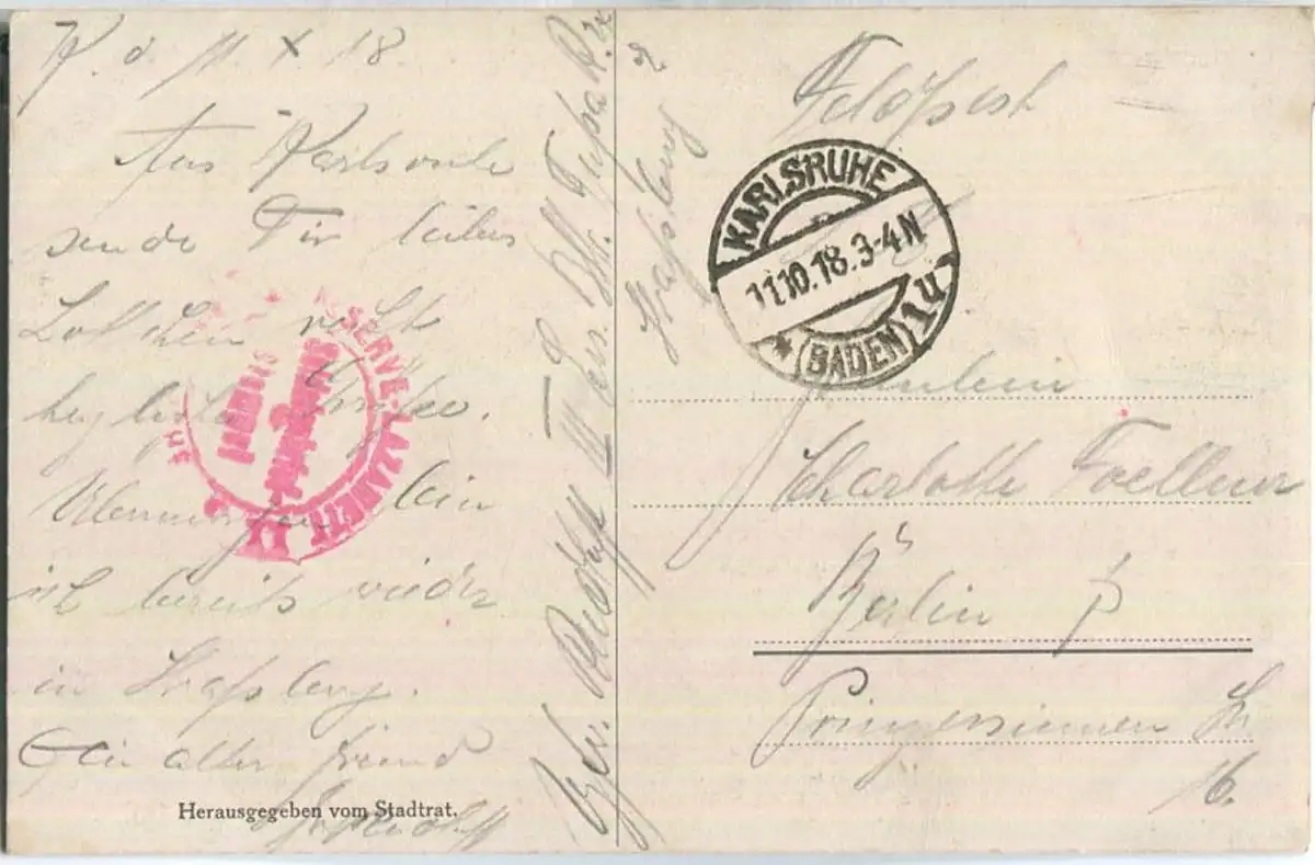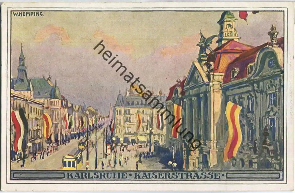 Karlsruhe - Kaiserstrasse - Flaggen - signiert W. Hempfing - Feldpost (G54681) gel. 1918