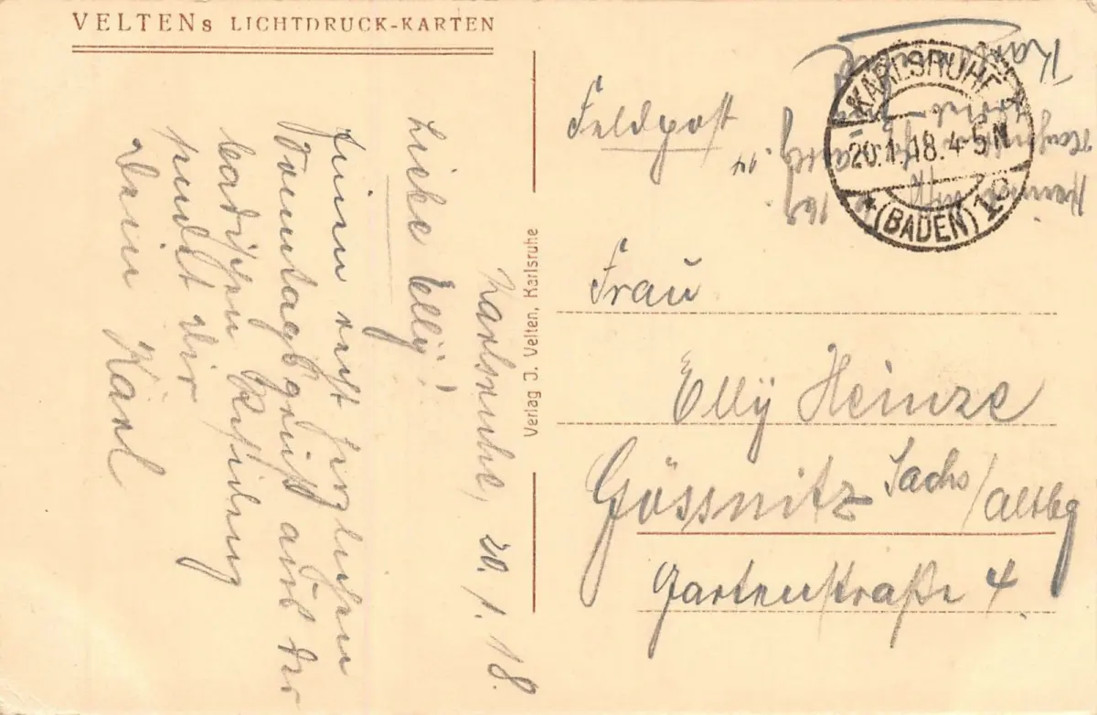 Rückseite: gelaufen 1918 von Karlsruhe (Baden)