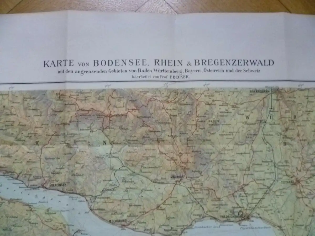 Karte vom Bodensee, Rhein und Bregenzerwald von Prof. F. Becker
