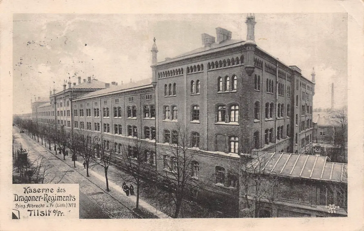 Kaserne des Dragoner-Regiments Tilsit O/Pr. (Sowetsk) Feldpostkarte 1915