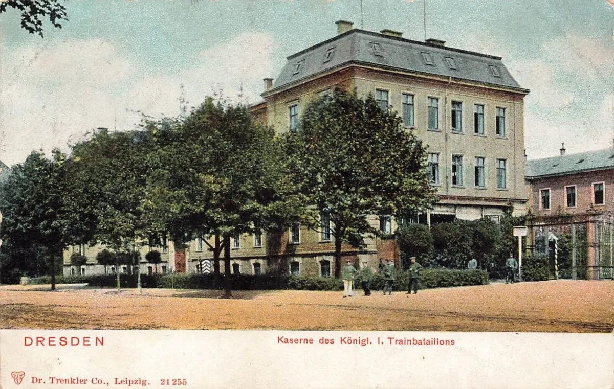 Kaserne des Königlichen I. Tranbataillons Dresden Sachsen Postkarte AK
