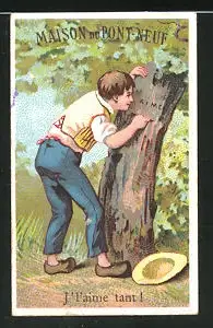 Kaufmannsbild Maison du Pont-Neuf, Verliebter schnitzt eine Nachricht in Baumrinde