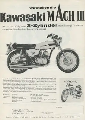 Kawasaki 500 Mach III Prospekt ca. 1968