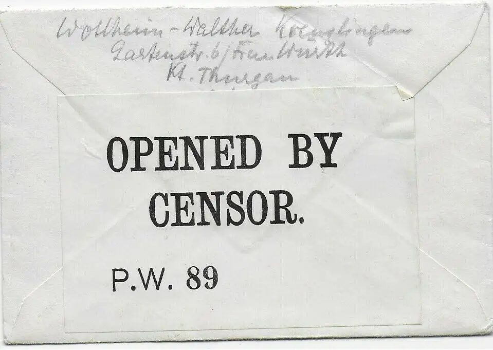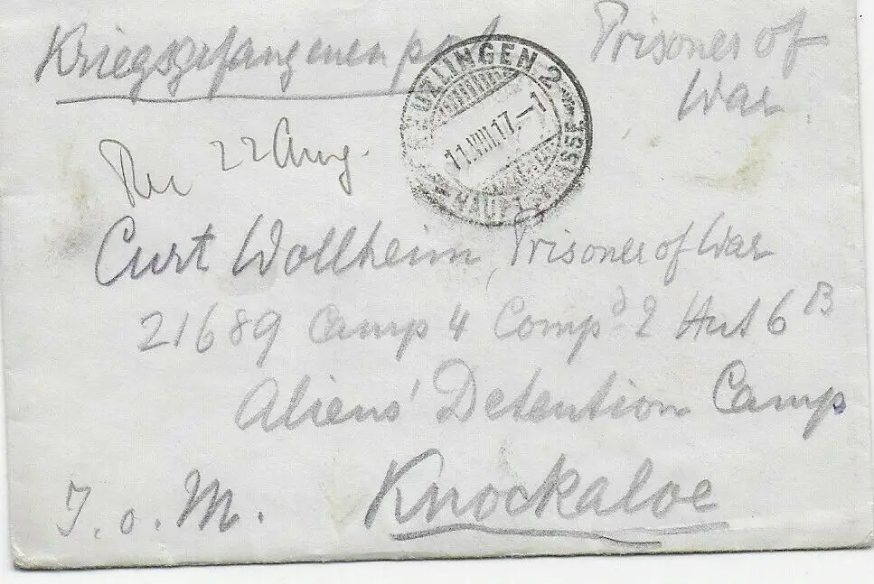 Kgf, PoW: Brief 1917 aus Kreuzlingen nach Knockaloe Internment Camp, Isle of Man