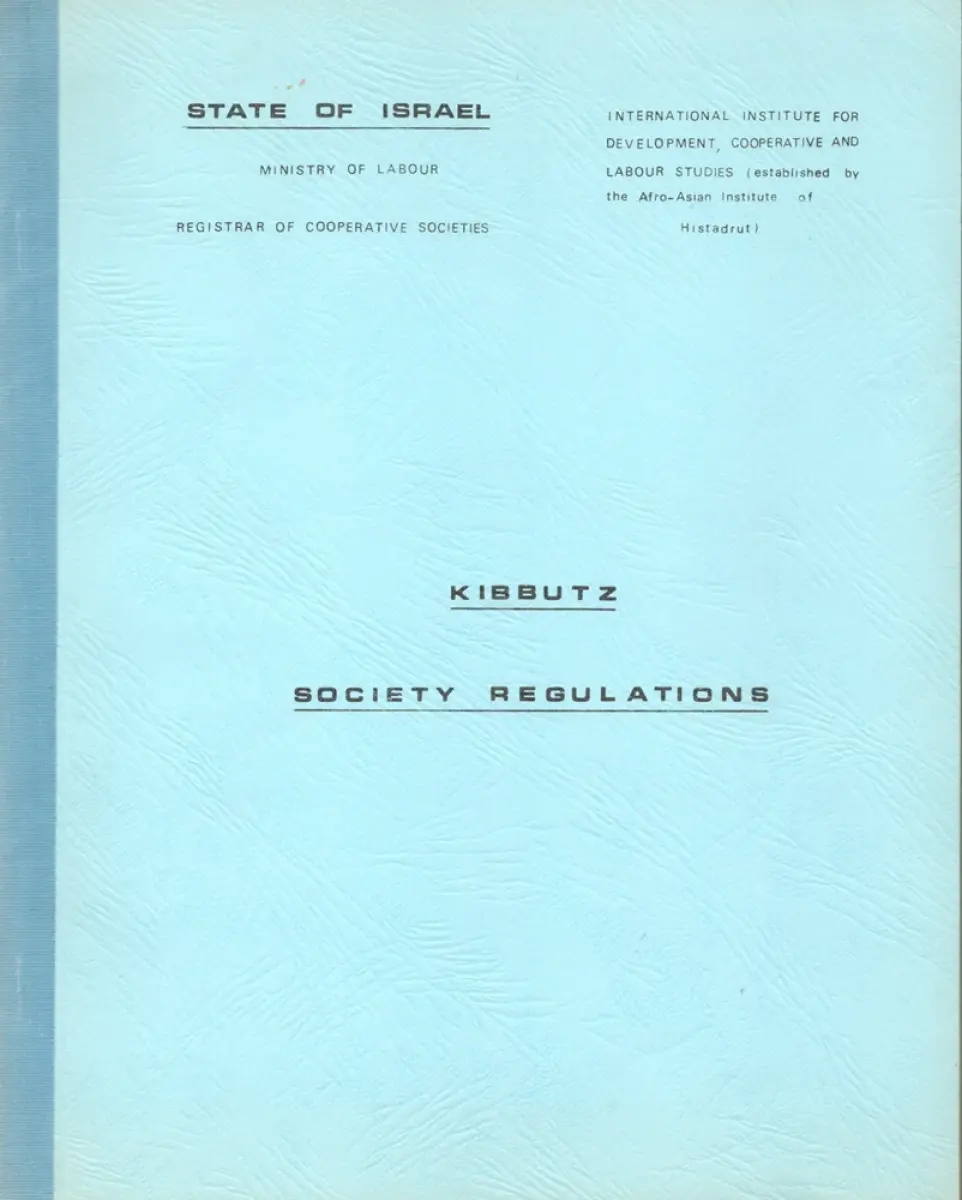 Kibbutz society regulations of the allied Kibbutz movement (Brit hatnua hakibbutzit). Ed. by State of Israel, Ministry of Labour, Registrar of Cooperative Societies; International Institute for Development, Cooperative and Labour Studies, established by t