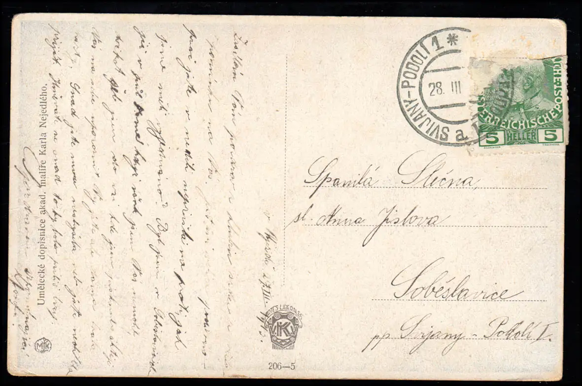 Kinder-AK Karla Nejedleho: Ihre erste Verabredung am Feldweg, SVIJANY-PODOL 1913