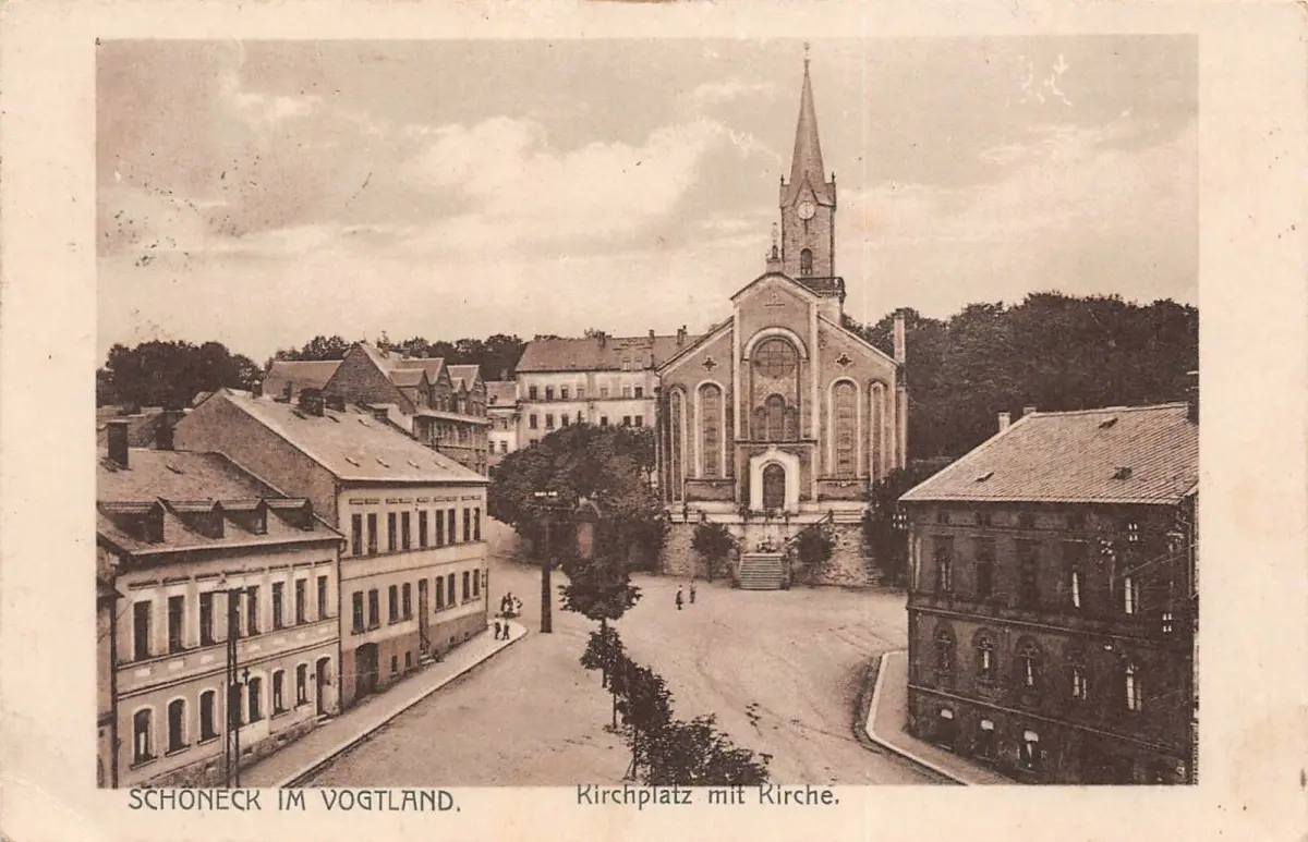 Kirchplatz und Kirche in Schöneck Vogtland Sachsen AK 1925