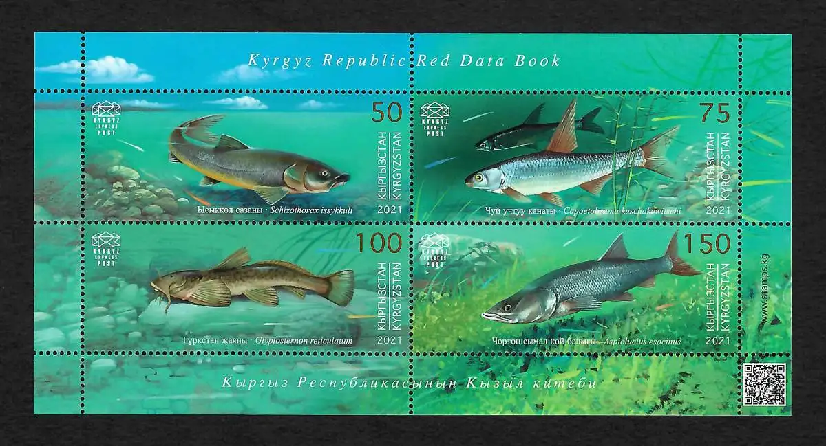 Kirgisien 2021: Bedrohte Fische, Block, postfrisch