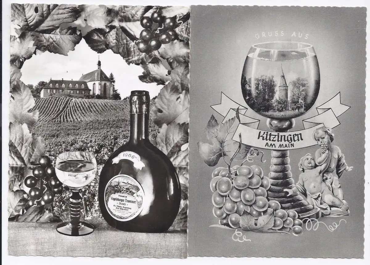 Kitizingen, Volkach, 2 sw AK mit Wein Motiven. #107
