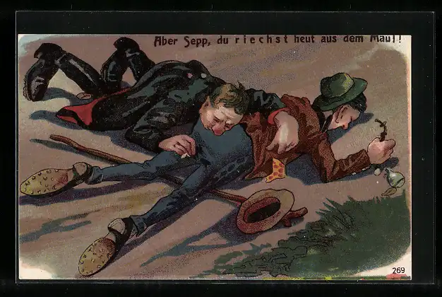 Klapp-AK Aber Sepp, du riechst heut aus dem Maul!