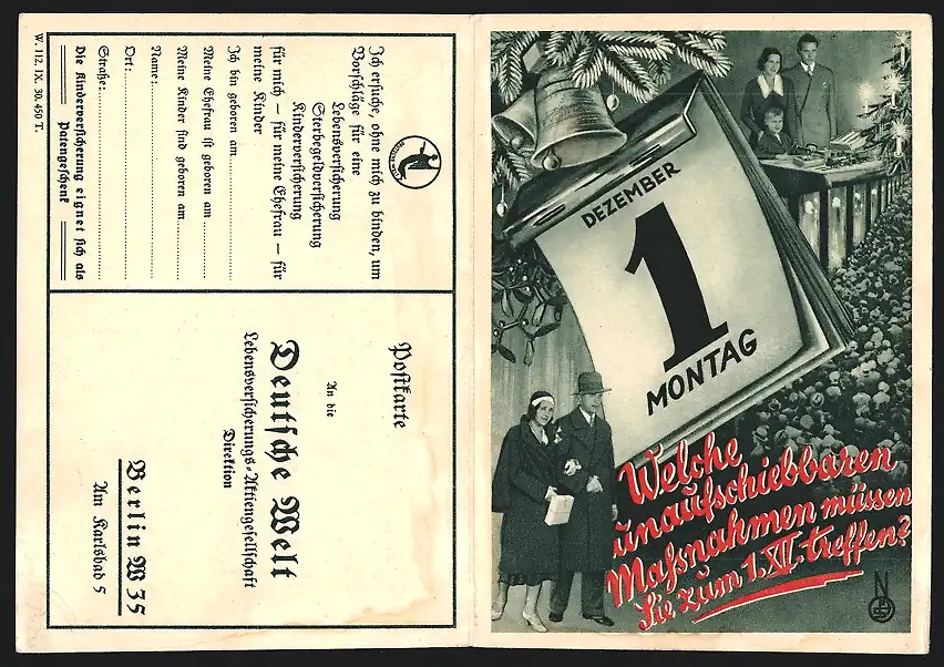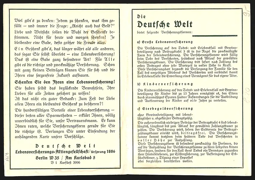 Klapp-AK Berlin, Lebensversicherungs-AG, Am Karlsbad 5, Reklame