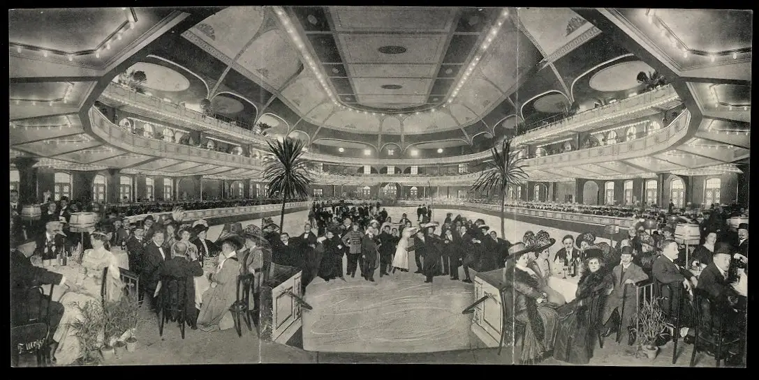 Klapp-AK Berlin, Sport-Palast, Grösste Kunsteisbahn der Welt, Schlittschuhläufer auf dem Eis